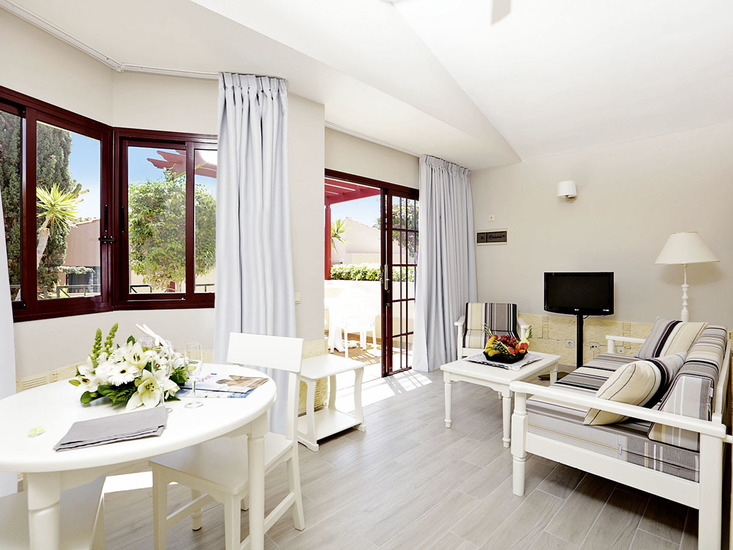 Schöne Ferienanlage im kanarischen Stil, bestehend aus eingeschossigen Bungalows, umgeben von einem weitläufigen subtropischen Garten mit exotischen Pflanzen und Schatten spendenden Palmen. Mehrere Sonnenterrassen, Liegen und Schirme inklusive (Badetücher geg. Kaution, Wechsel geg. Geb.), 2 große Swimmingpools (1 beheizbar). Pool-/Snackbar mit Sitzterrasse und Chill-out-Terrasse mit schönem Blick über die Gartenanlage. Empfangsbereich, Rezeption, Sitzgruppen, Restaurant mit Außenterrasse, Friseur. Basis-WLAN (inkl.). Landeskat.: 3 Schl., 199 Einheiten.